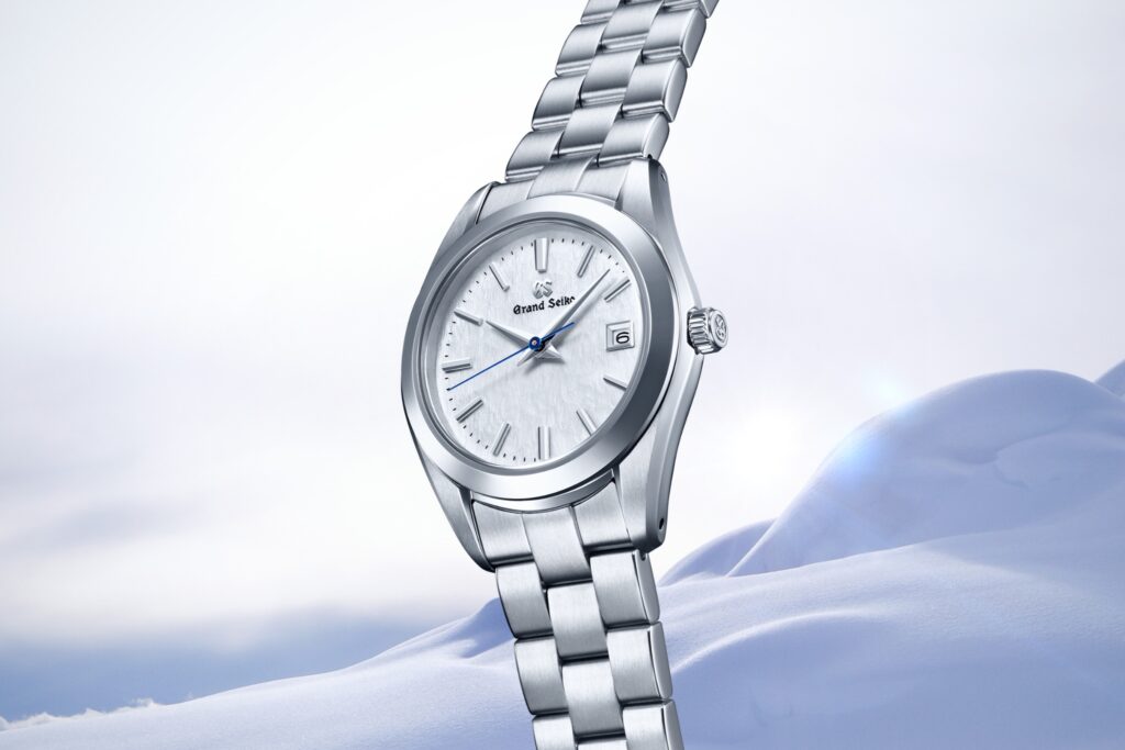 Complementing it, the STGF359 “Snowflake” dial reflects the rippling patterns formed when wind sweeps snow across the mountains, its pure white surface offering depth and movement that invite the eye to linger.