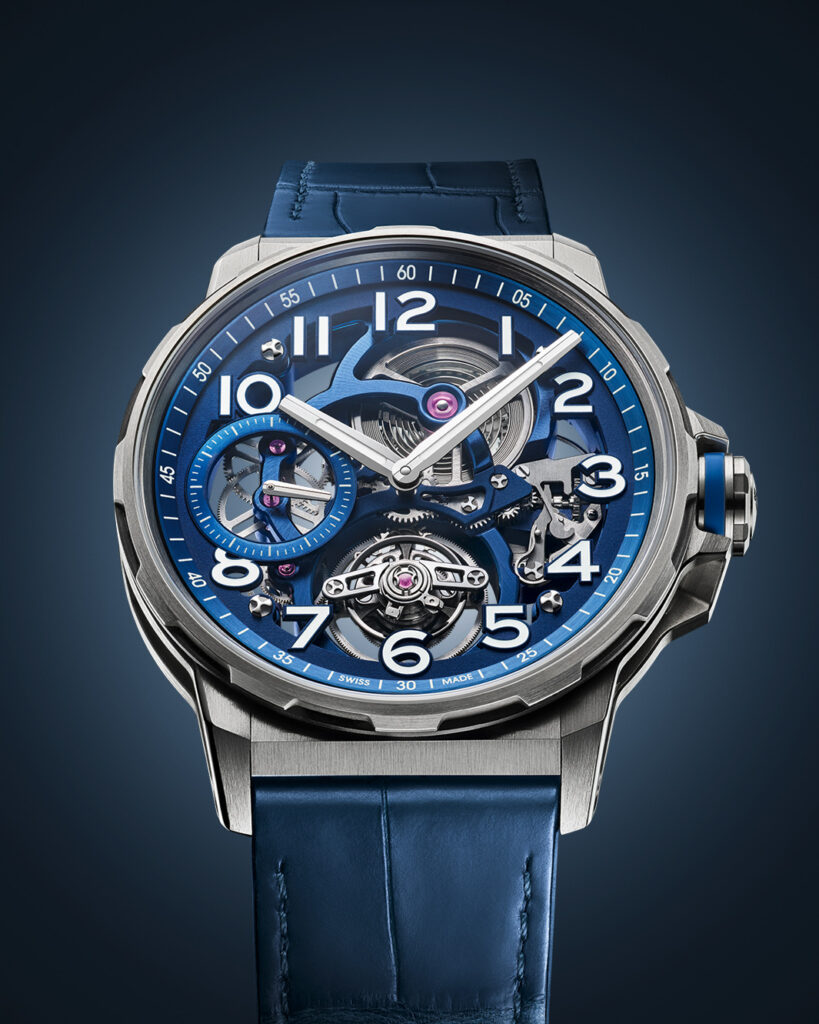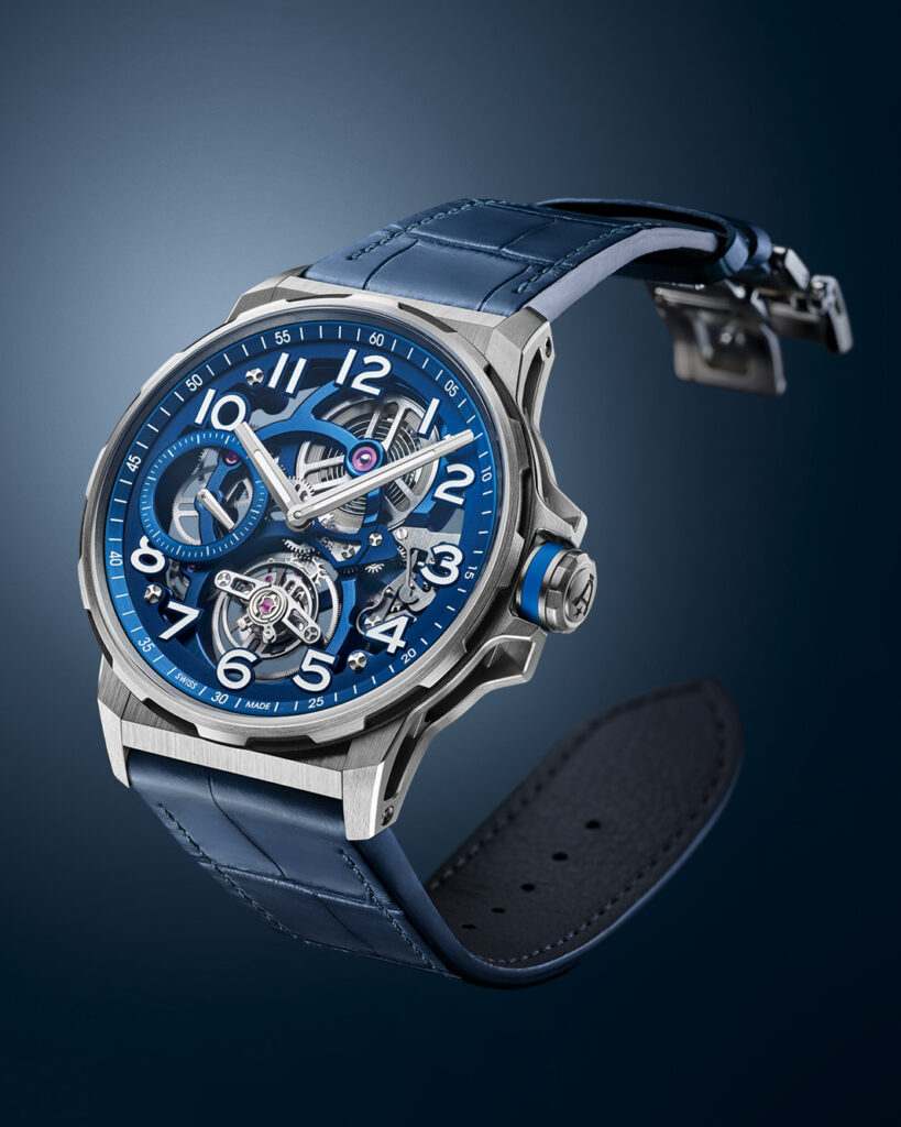 Angelus Flying Tourbillon embodies the brand’s avant-garde spirit, pairing a contemporary, openworked design with a sophisticated flying tourbillon. Its architectural case, skeletonised movement and bold materials highlight mechanical purity, technical mastery, and modern haute horlogerie expression.
