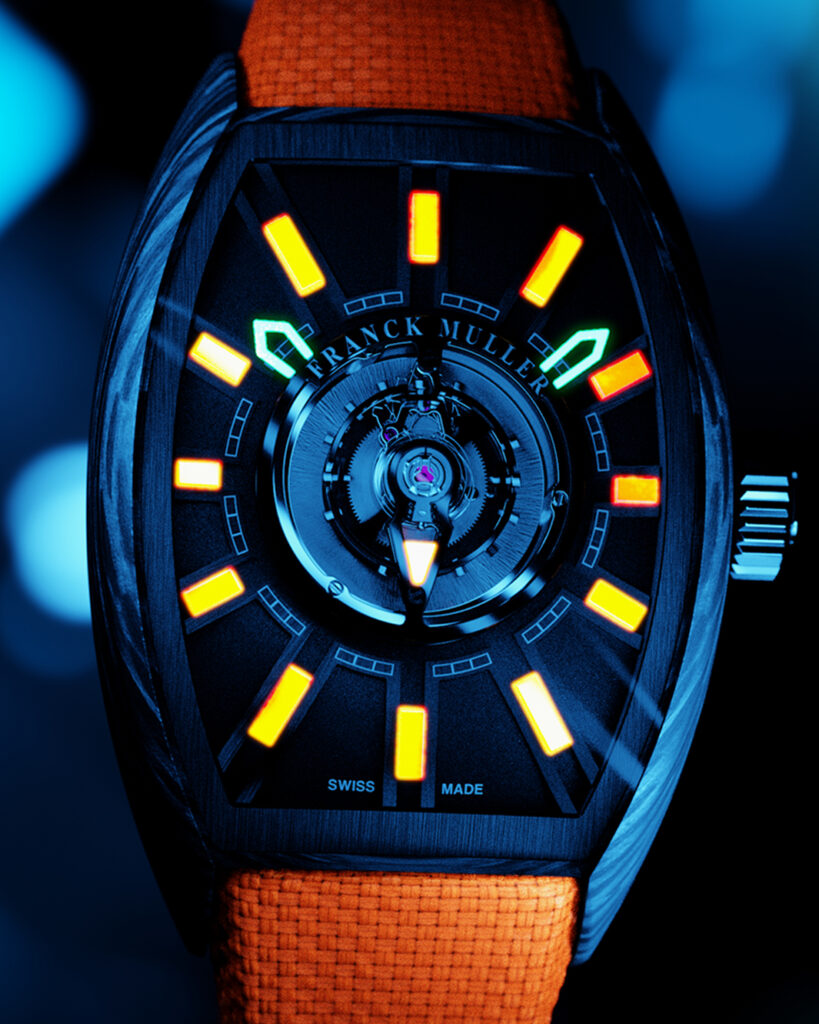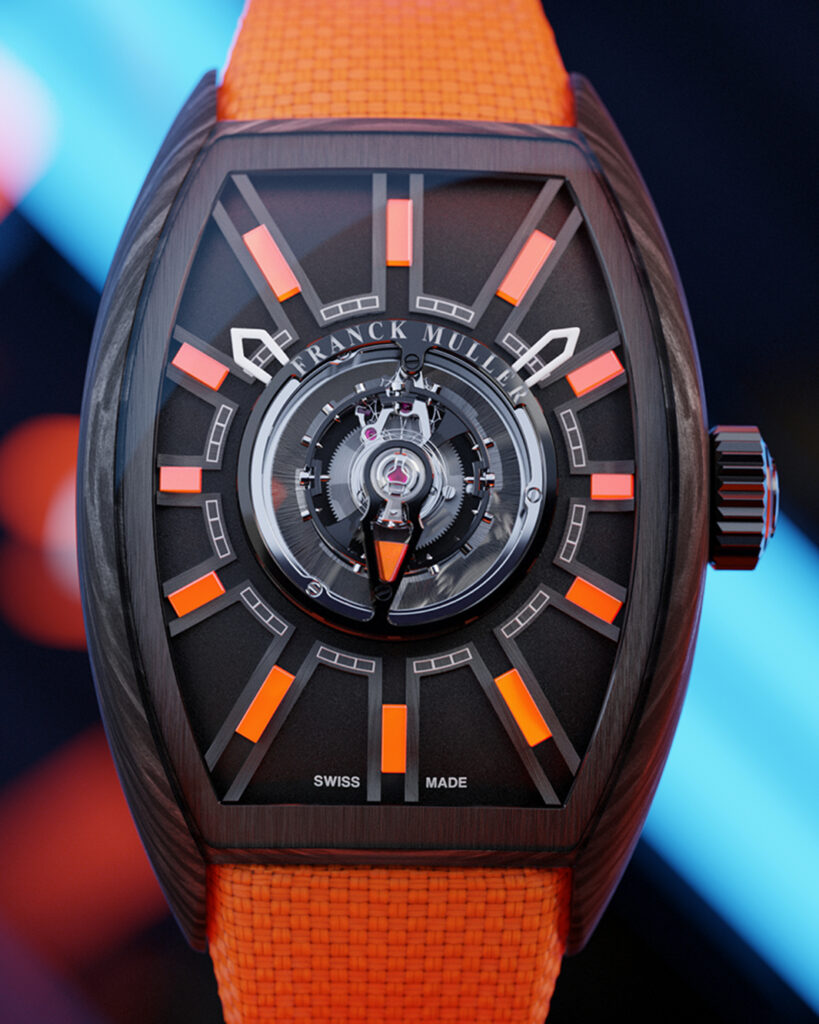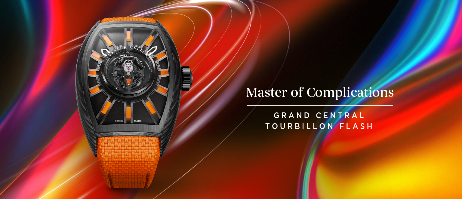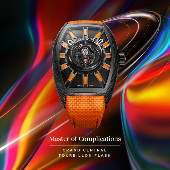 Inspired by the universe of futuristic automobiles and following the success of the Grand Central Tourbillon — the world’s first tonneau-shaped centre tourbillon watch — Franck Muller is proud to present the Grand Central Tourbillon Flash, which explores edgy and vibrant perspectives of an already ground-breaking timepiece and projects itself light-years ahead.