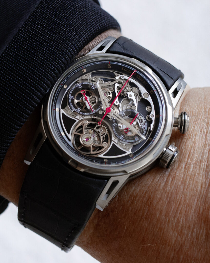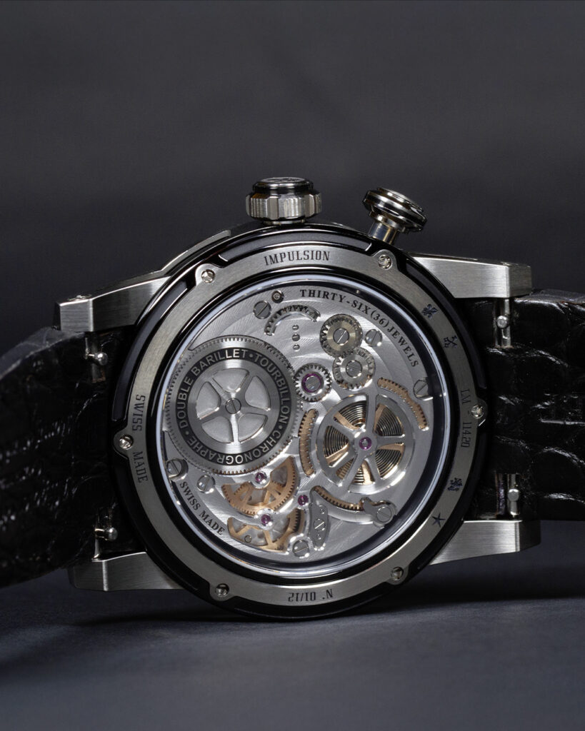 This spectacular creation reaffirms the company’s promise to deliver a true “show on your wrist.” The Impulsion features a monopusher chronograph paired with a flying tourbillon, powered by an exceptional in-house calibre designed to showcase mechanical artistry in its purest form.