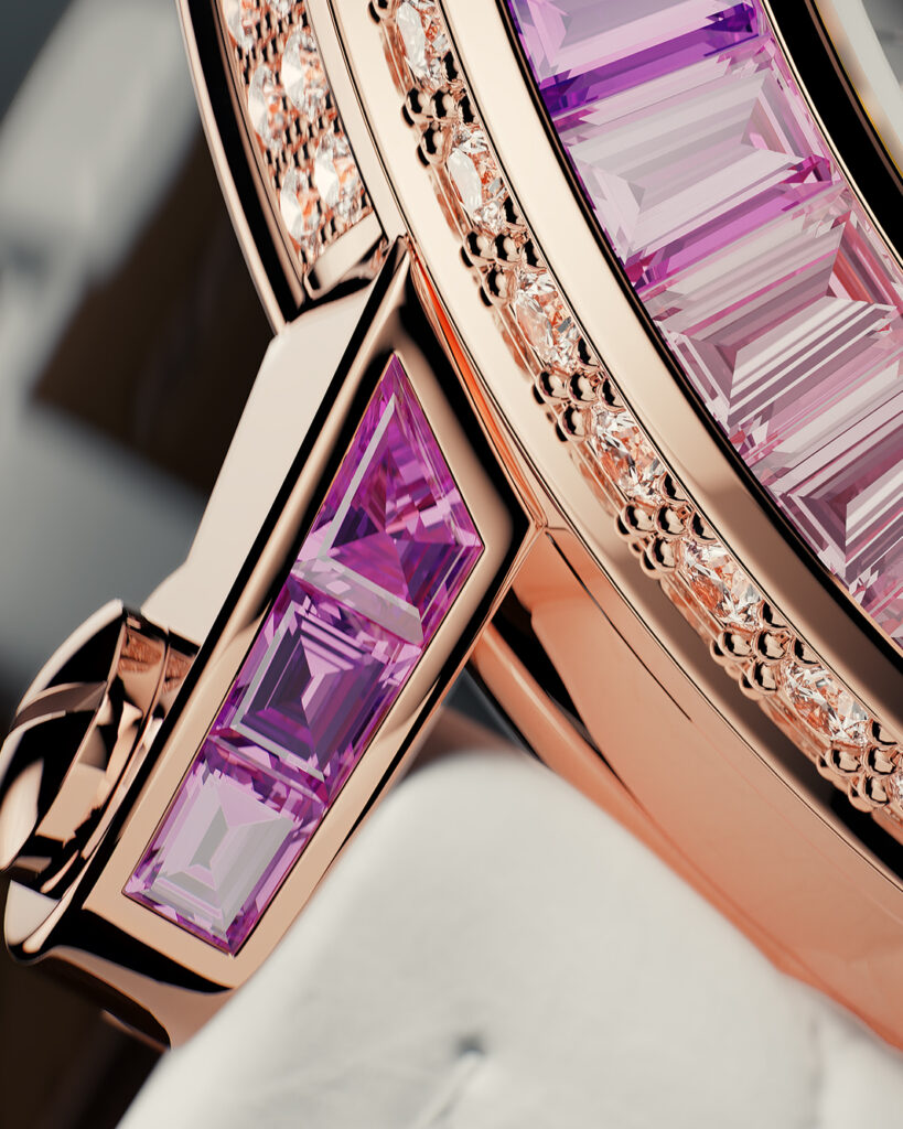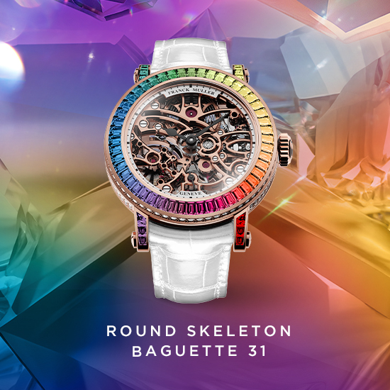 In its quest for modern yet timeless creations, Franck Muller offers an iconic collection as its High Jewellery launch for 2024: the Round Skeleton Baguette in 31mm, an exceptional collection set with baguette diamonds or precious gems, reflecting the perfect harmony between the world of Fine Jewellery and Haute Horlogerie.