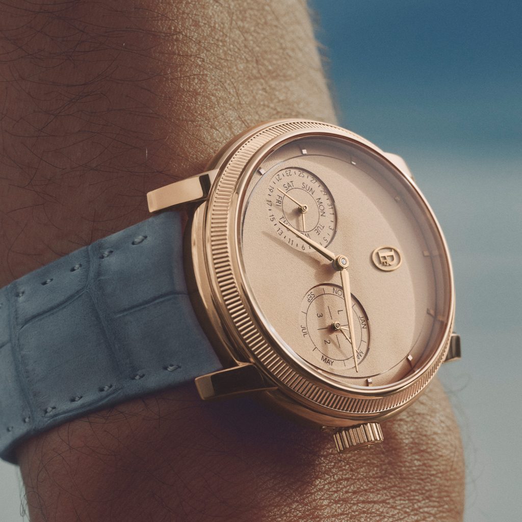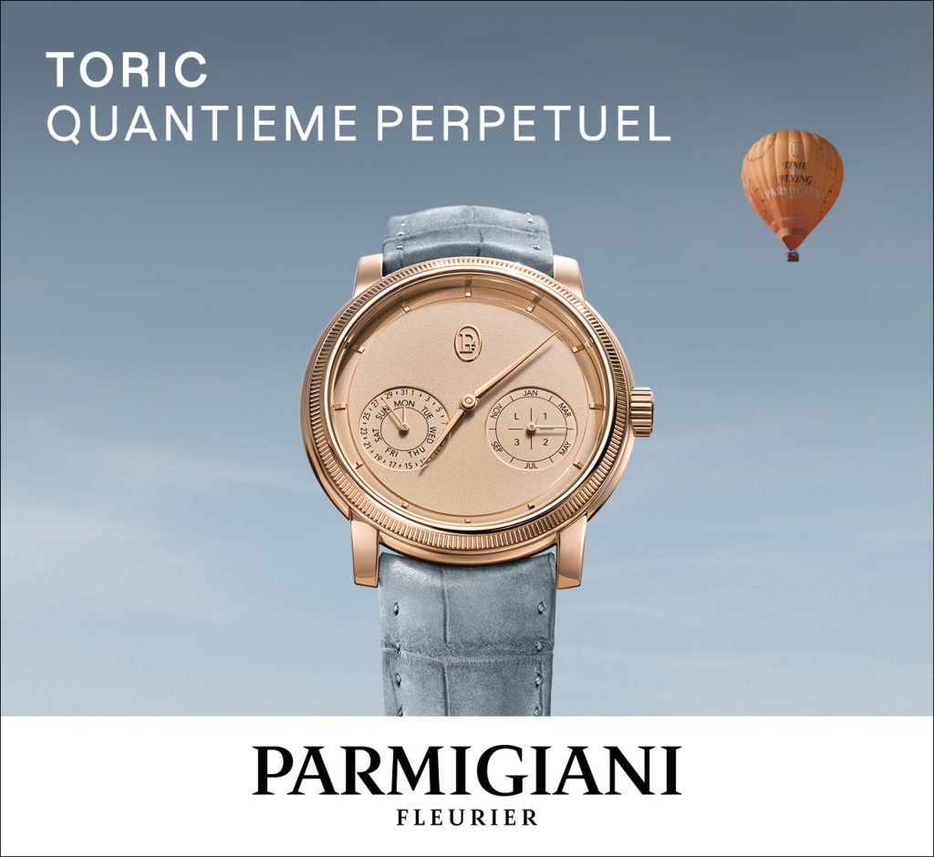 The Toric Perpetual Calendar is thoughtfully redesigned to offer unique visual and emotional purity. True to its minimalist vision, Parmigiani Fleurier boldly simplifies this aesthetic challenge through an ingenious coaxial display: all essential information – day and date on one hand, month and leap years on the other – are harmoniously grouped on two counters positioned at 4 and 8 o’clock. This intuitive layout generously preserves the central space for the fundamental hour and minute indications as well as the House’s distinctive emblem. Three correctors discreetly located on the case side facilitate smooth adjustment of the calendar functions. This aesthetic purity provides an immediate sense of serenity and rare visual clarity, perfectly embodying Parmigiani Fleurier’s quest for balance.