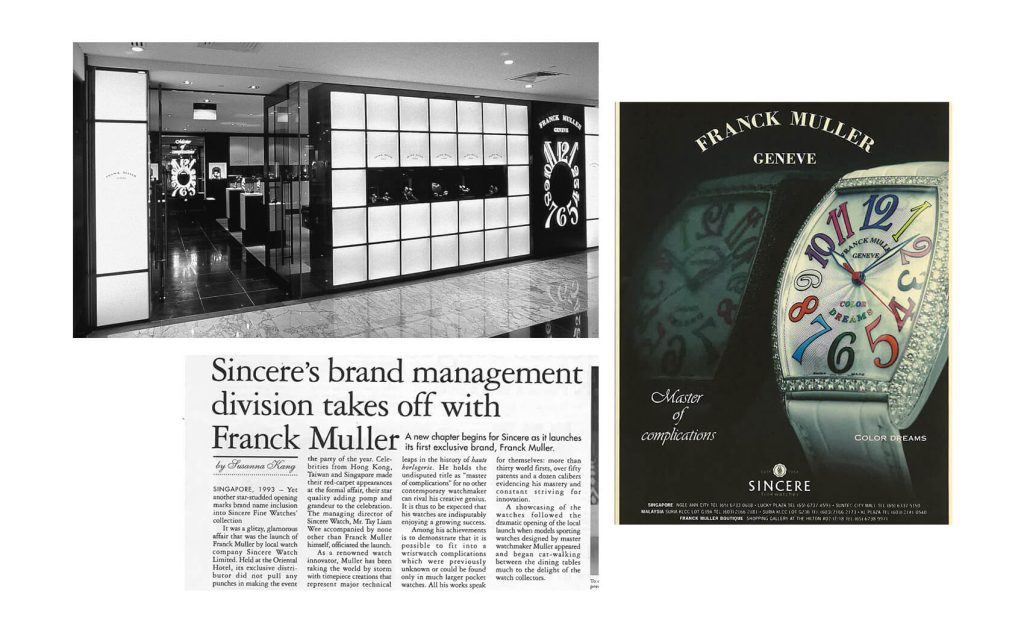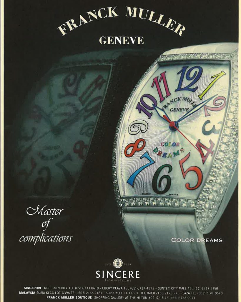 Sincere pioneered the introduction of Franck Muller in Singapore, revolutionizing perceptions of independent watchmaking in the region. As the first retailer to embrace Franck Muller’s iconic curvex timepieces into its portfolio, Sincere unveiled a world of creativity, innovation, and unparalleled craftsmanship in the realm of horology in Asia. This pivotal moment in Sincere’s history marked the beginning of a lasting partnership that continues to captivate watch aficionados with Franck Muller’s distinctive blend of avant-garde artistry and technical ingenuity to this day. Celebrating over 30 years of friendship with the Master Of Complications.