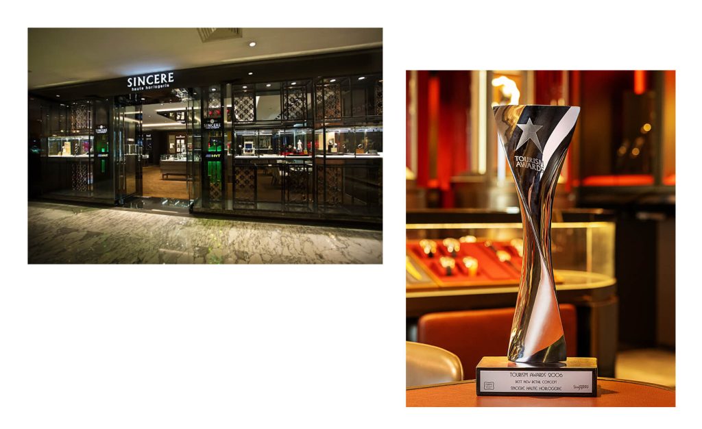 With its ultra-modern decor that set it apart from a typical luxury-watch store of the period, the inaugural Sincere Haute Horlogerie (SHH) in Singapore’s Hilton hotel was one of the world’s first “concept” stores dedicated to high-end mechanical watches when it opened in 2005. Its trailblazing concept earned the boutique its prestigious Singapore Tourism Award for Best New Retail Concept.