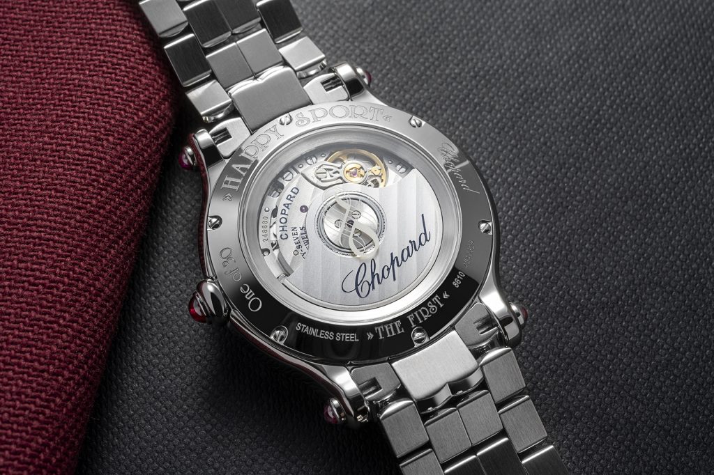 Looking at the caseback of the Chopard Happy Sport The First Sincere Platinum Jubilee Edition, “One of 30” is engraved to highlight its exclusivity, as well as Sincere’s 70th anniversary logo on the crystal to commemorate this special occasion.