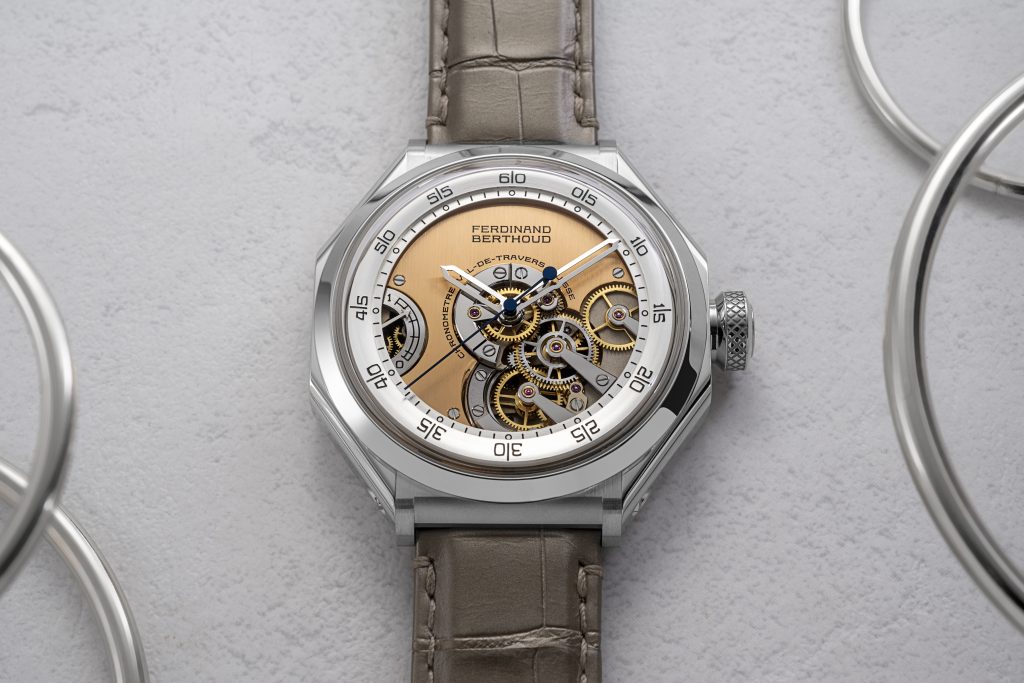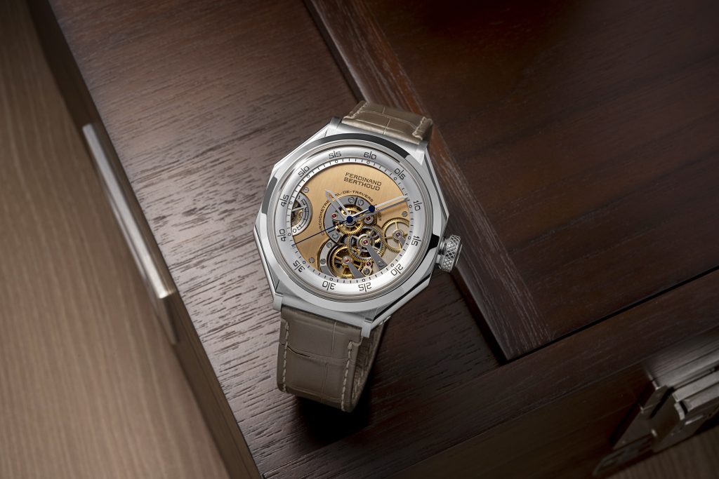These mechanical intricacies are revealed through the transparent sapphire crystal caseback, embodying the enduring principles of horological sophistication while merging traditional craftsmanship with a contemporary approach to precision engineering. This exceptional timepiece represents a notable achievement in fine watchmaking, showcasing Ferdinand Berthoud’s dedication to exceptional craftsmanship while reflecting the dynamic evolution of modern timekeeping.