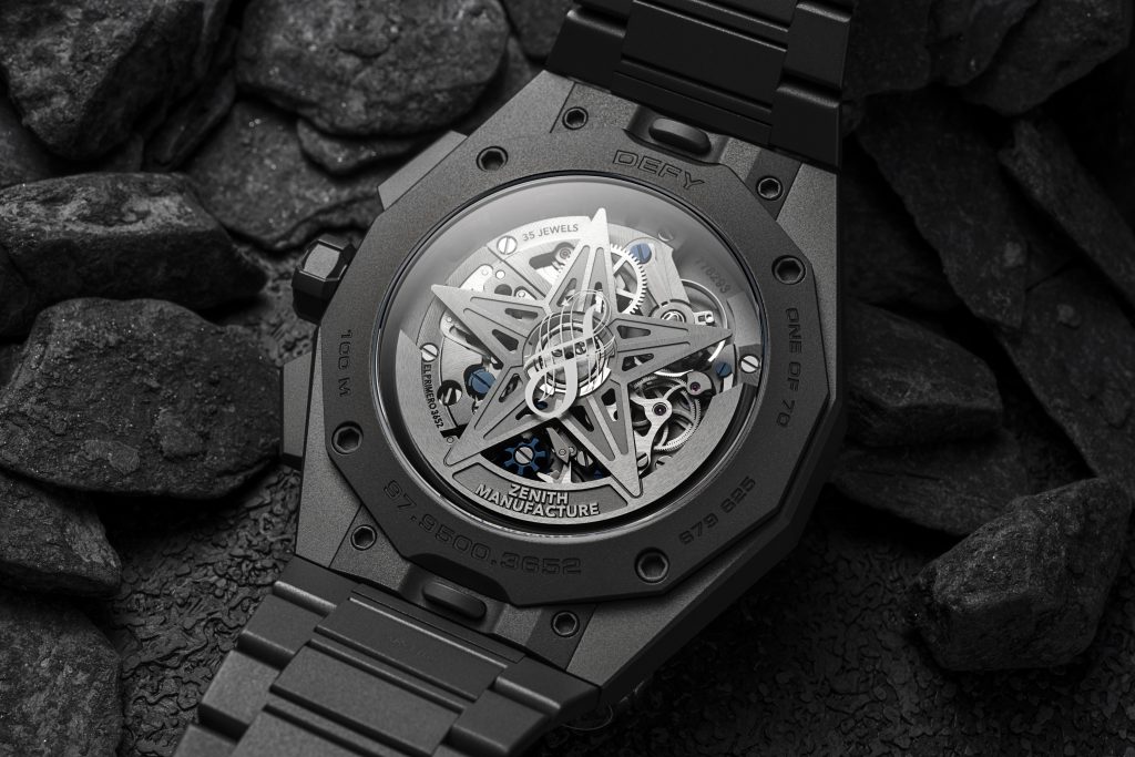 The caseback reveals the remarkable El Primero 3652 movement, complete with a star-shaped oscillating weight that echoes the ZENITH emblem.