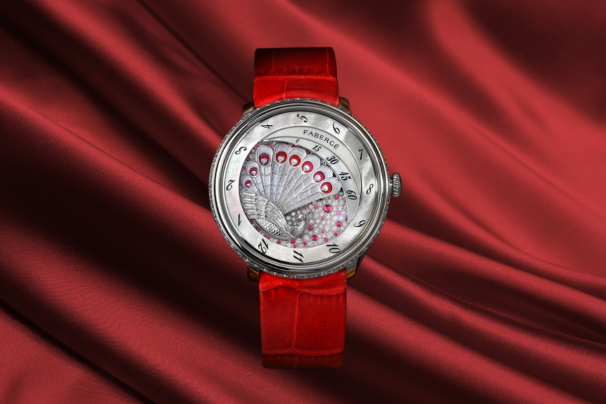 The Compliquée Peacock Ruby speaks in Fabergé’s distinctive language of ornament and surprise, defined by colour and craftsmanship that are intricately intertwined. Rubies and diamonds frame a hand-engraved peacock, creating a composition rich in texture, light, and symbolism. Time unfolds through an unconventional display that favours artistry and imagination, offering a romantic narrative shaped by heritage and meticulous craft.