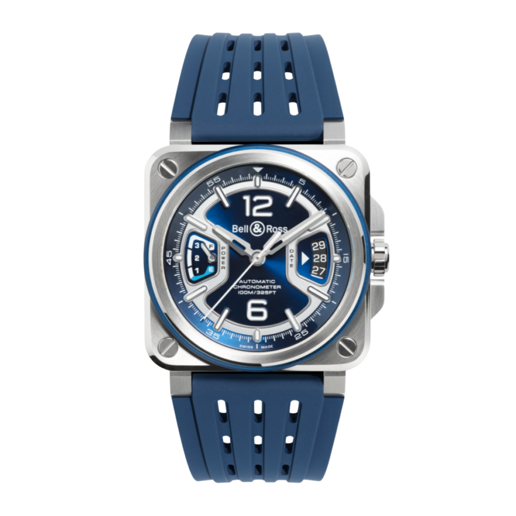 The BR-X3 reinvents the BR-03, thanks to an innovative construction and an in-house movement with a 5-year warranty. Reflecting its aeronautical inspiration, it is intended for aficionados of technical watches with a bold design.