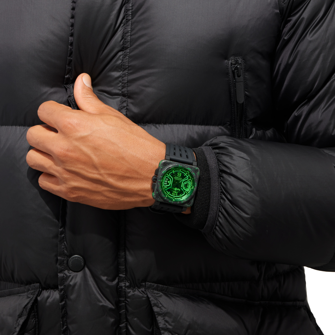 The BR-X3 reinvents the BR-03 with an innovative construction and a 5-year guaranteed manufacture movement. True to its aeronautical inspiration, it is aimed at enthusiasts of technical watches with a distinctive design.