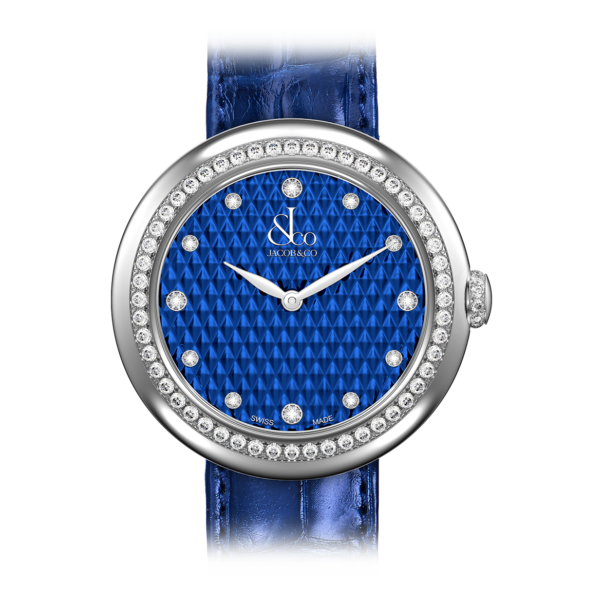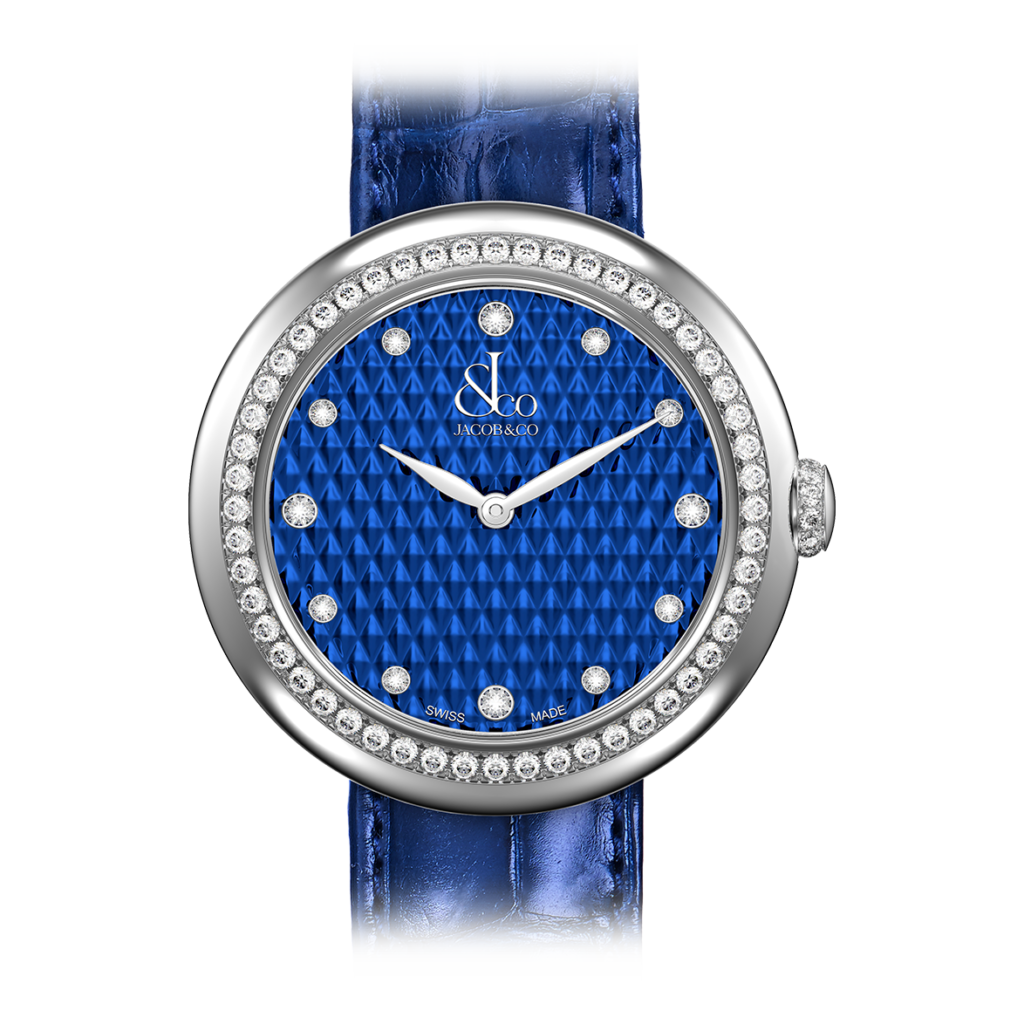 In 2017, Jacob & Co. created a new ladies’ collection that looked like no other. Round, without lugs, with a strap directly attached to the case, Brilliant was designed to be versatile, precious and to embrace the entire range of gems Jacob & Co. loves.