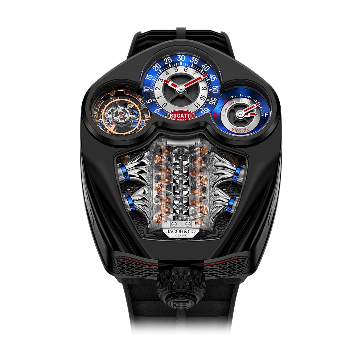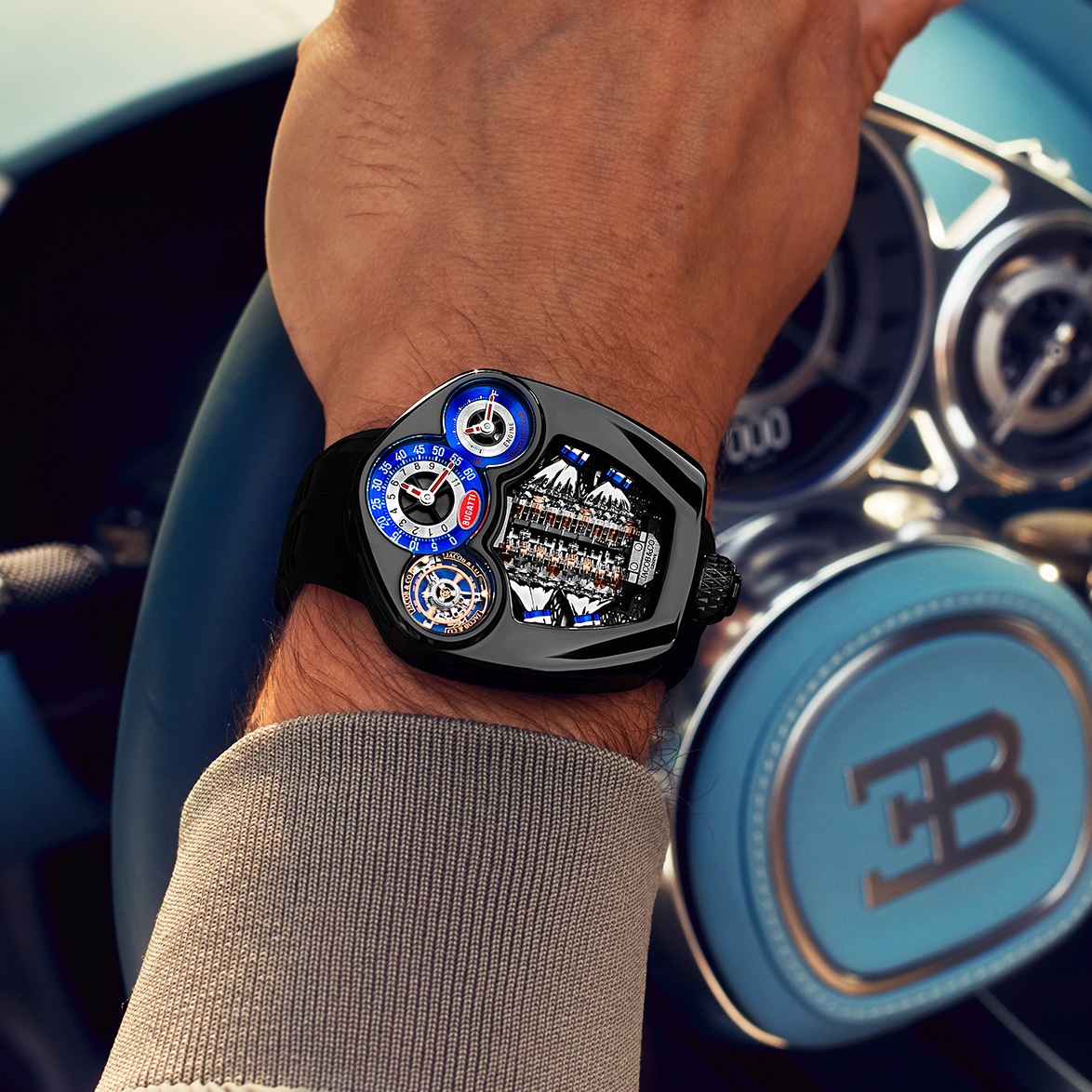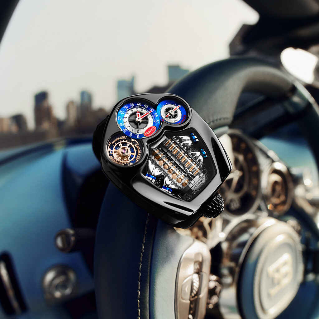 In 2019, Bugatti Automobiles and Jacob & Co. entered into a partnership to create unrivalled hypercar-inspired timepieces. Both brands share a unique focus on extreme luxury, mechanical performance, and craft. This shared mindset led to the creation of the Bugatti Chiron Tourbillon in 2020 and the Bugatti Tourbillon in 2024 — exceptional timepieces inspired by extraordinary sports cars.