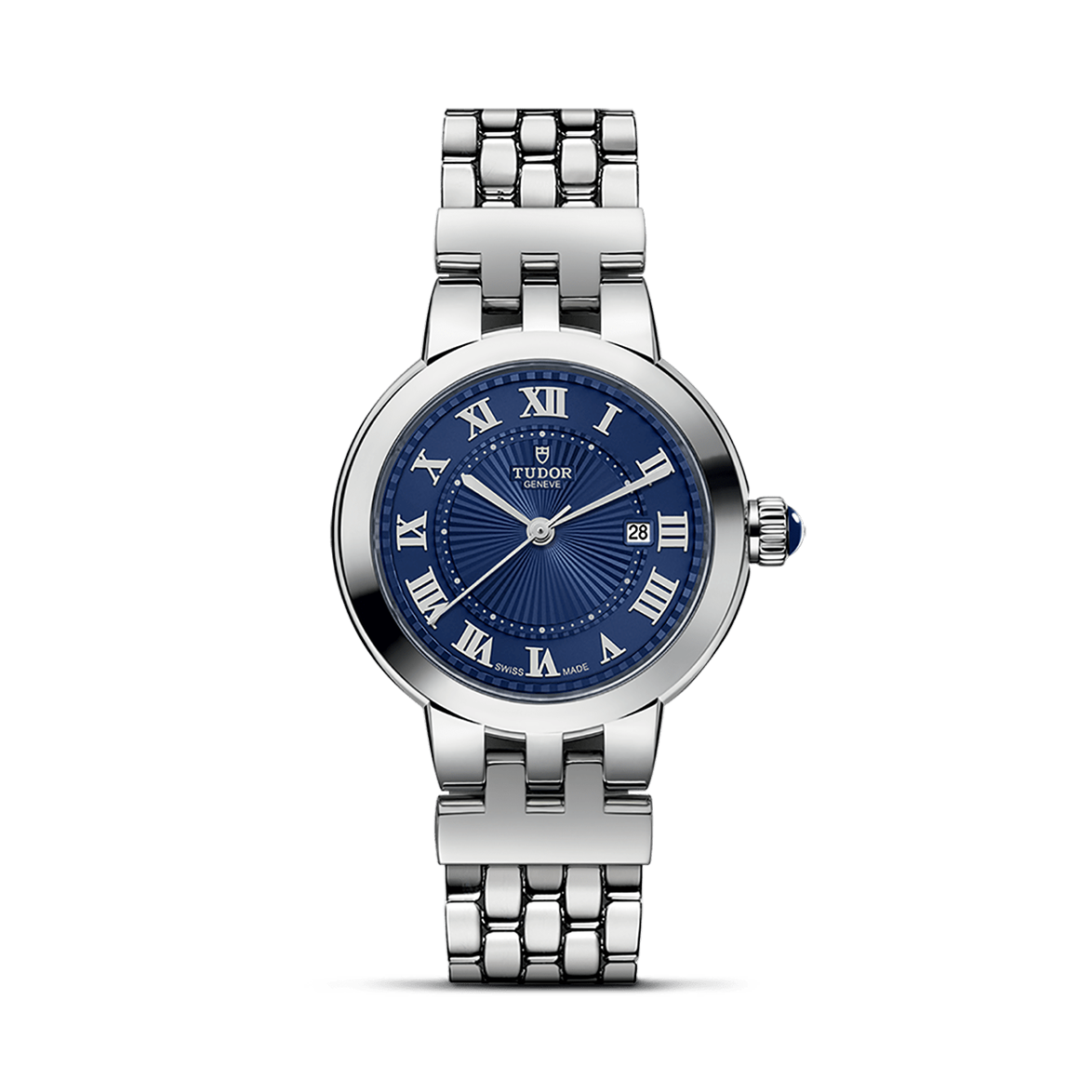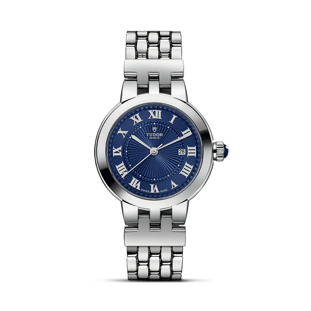 The Clair de Rose line, reimagined in a classic, refined and timeless spirit, uses the brand’s historic aesthetic codes. The Clair de Rose collection is available exclusively in steel and in six configurations and three sizes, 26, 30 and 34 mm in diameter, it presents opaline or “TUDOR Blue” dials with delicate decorations in relief, punctuated with blue lacquered Roman numerals or diamonds.