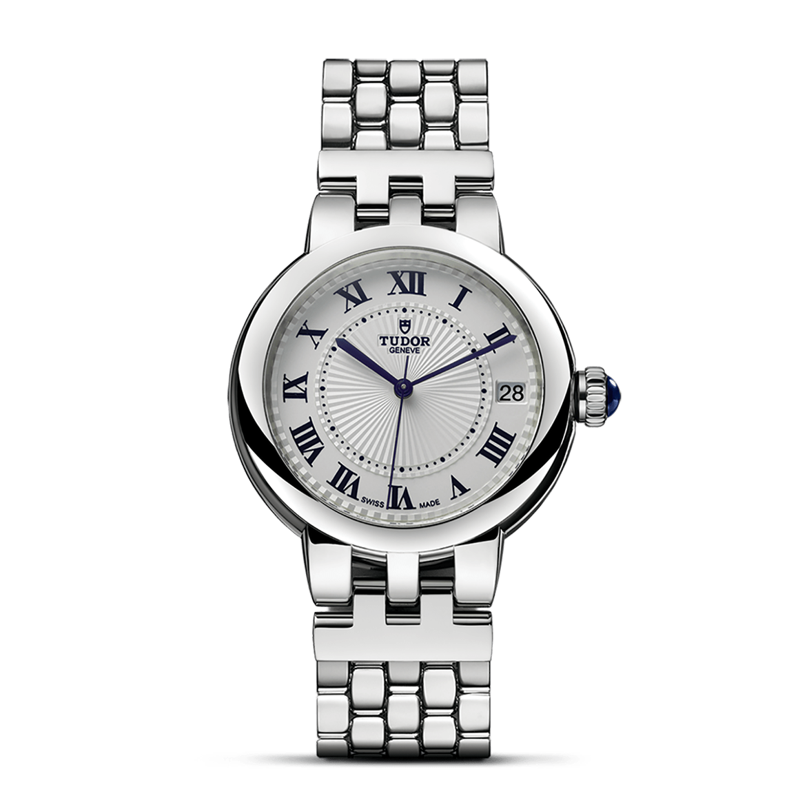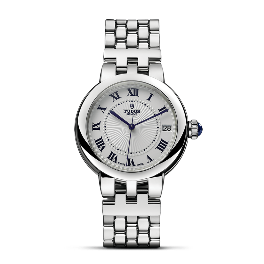 The Clair de Rose line, reimagined in a classic, refined and timeless spirit, uses the brand’s historic aesthetic codes. The Clair de Rose collection is available exclusively in steel and in six configurations and three sizes, 26, 30 and 34 mm in diameter, it presents opaline or “TUDOR Blue” dials with delicate decorations in relief, punctuated with blue lacquered Roman numerals or diamonds.
