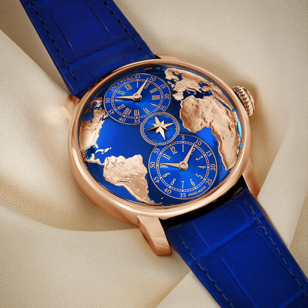 The World Is Yours Dual Time Zone is a tribute to the watch that started it all. The watch that opened the world of watchmaking to Jacob Arabo. It’s inspired by a vintage timepiece that’s an Arabov family heirloom: a double time zone watch that Jacob Arabo received at the age of 13, from the hands of his father, Nison Arabov.