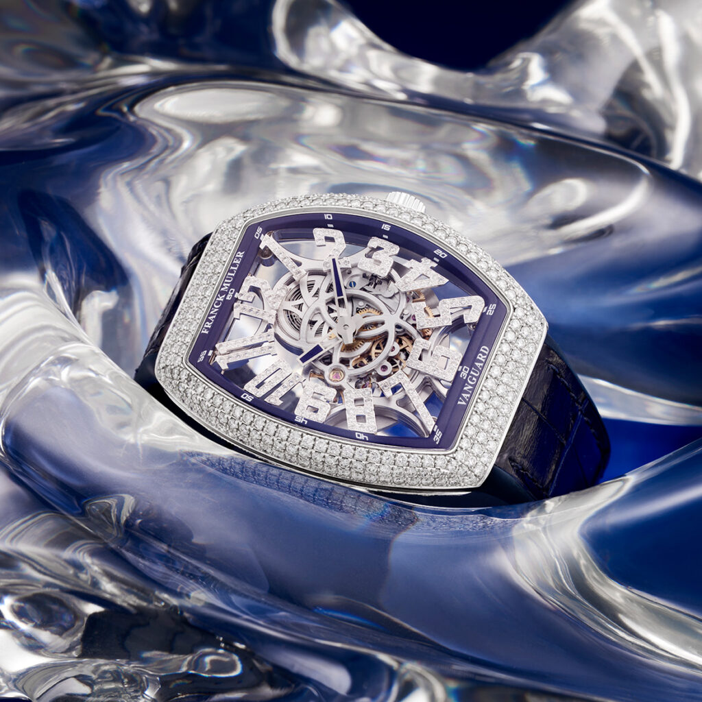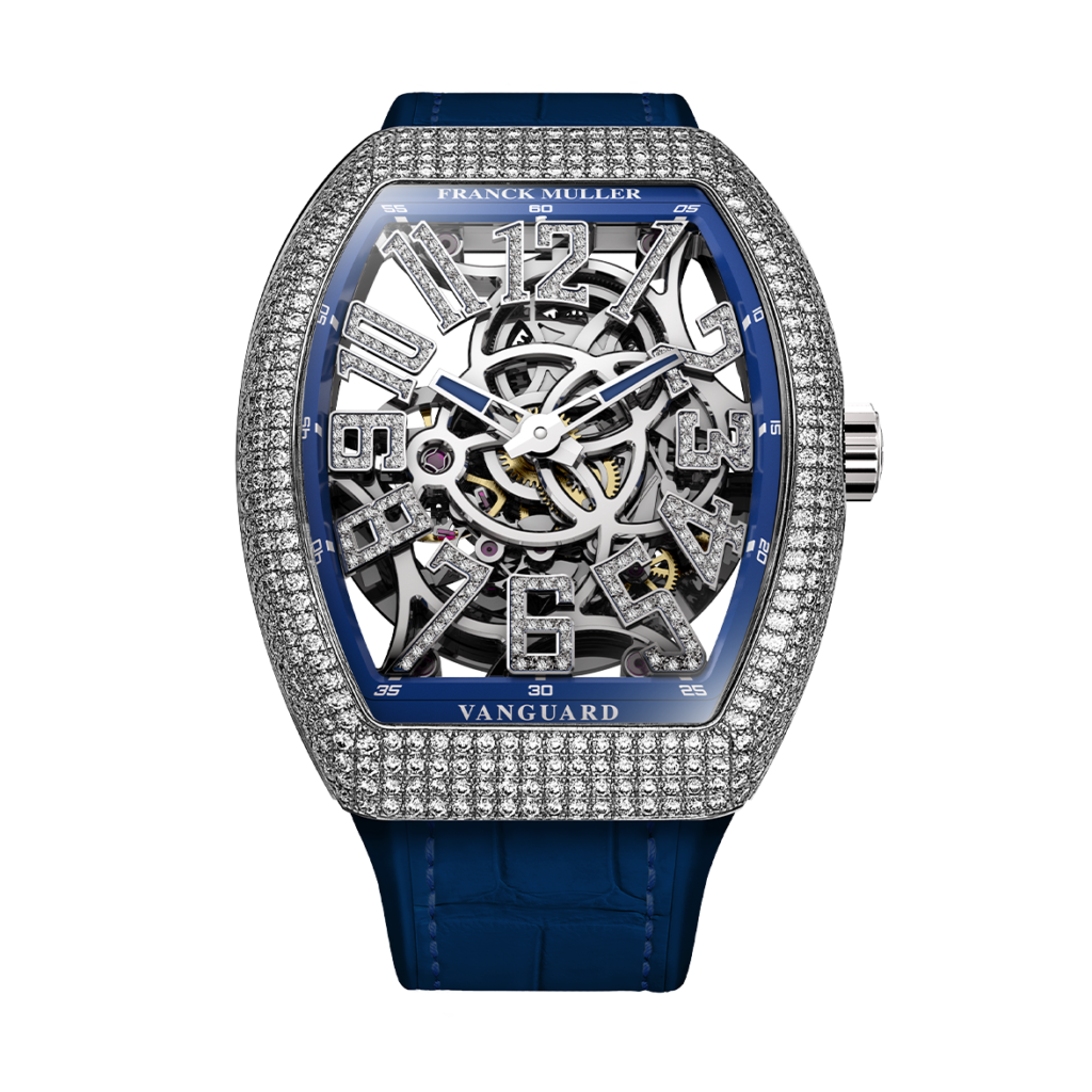 The Master of Complications proudly presents the Vanguard Slim Skeleton. Fully skeletonised and self-winding with an in-house movement, this timepiece offers a contemporary interpretation of the iconic Vanguard series, renowned for its modern and edgy appeal. This collection includes models crafted in rose or white gold, set with diamonds.